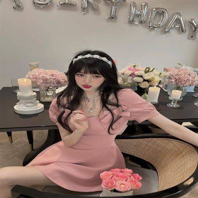 少女斯嘉莉 蝴蝶结甜美方领高腰茶歇短裙气质连衣裙夏