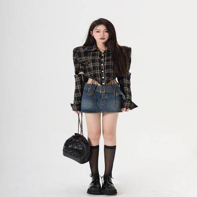 设计感小众辣妹短裙牛仔裙半身裙女高腰a字裙子包臀裙裙裤