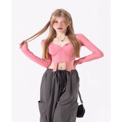小众独特别致设计感防晒长袖t恤女夏薄款修身短款辣妹上衣