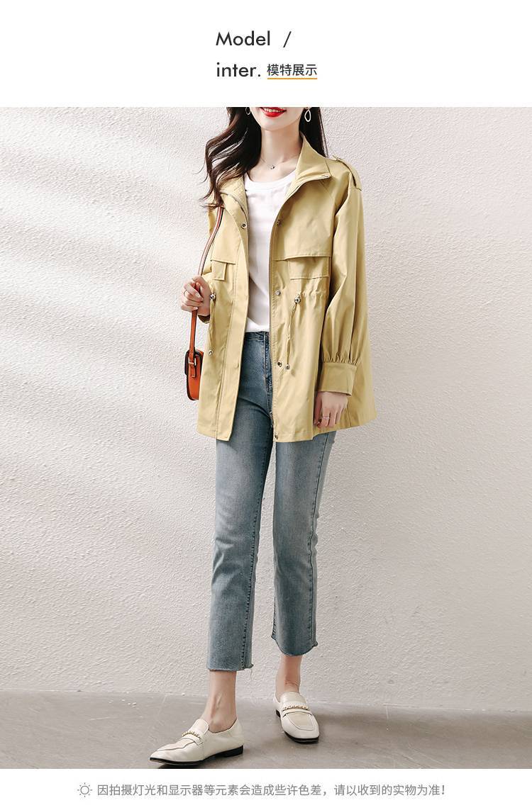 今年流行春季2021年新款收腰显瘦连帽风衣女中长款小个子工装外套
