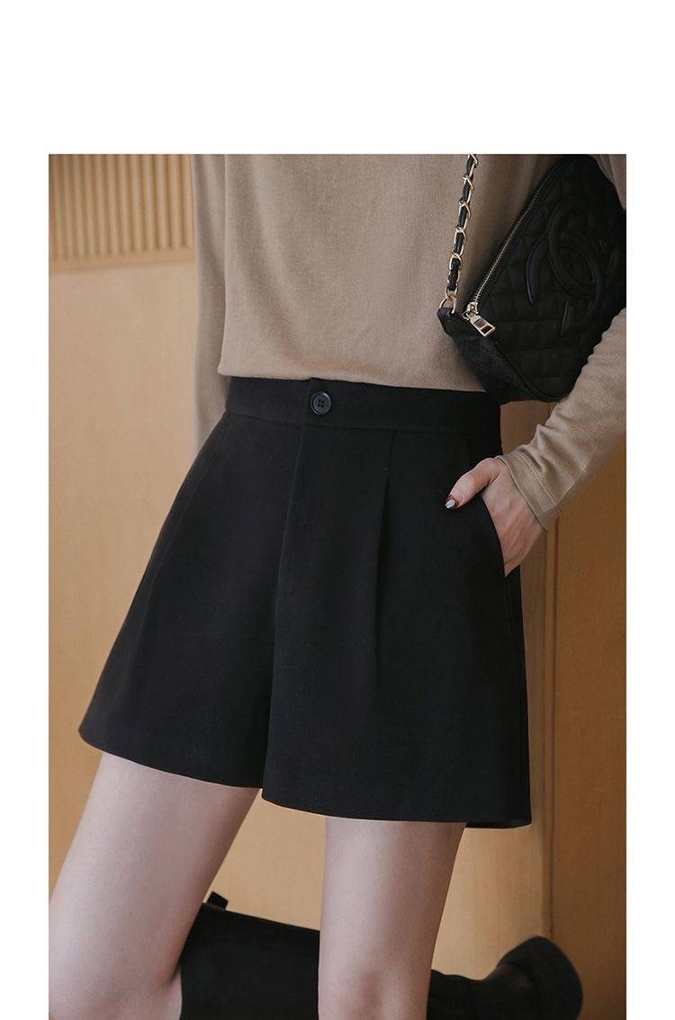 秋冬新款西装2023夏季外穿高腰宽松阔腿毛呢短裤黑色休闲裤子