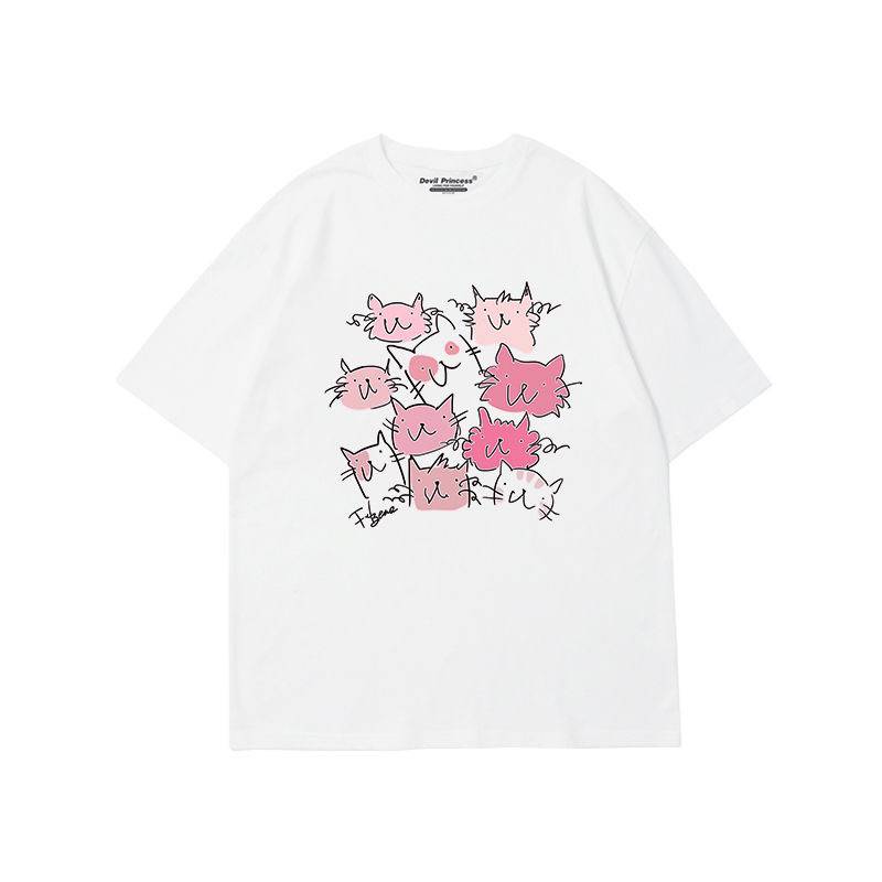 100%纯棉280克宽松辣妹小众别致猫咪印花休闲显瘦短袖t恤女夏季潮