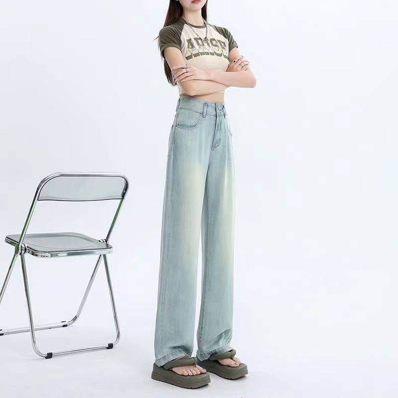 夏天薄裤子天丝牛仔女2024年春夏季薄款宽松垂感冰丝直筒拖地裤