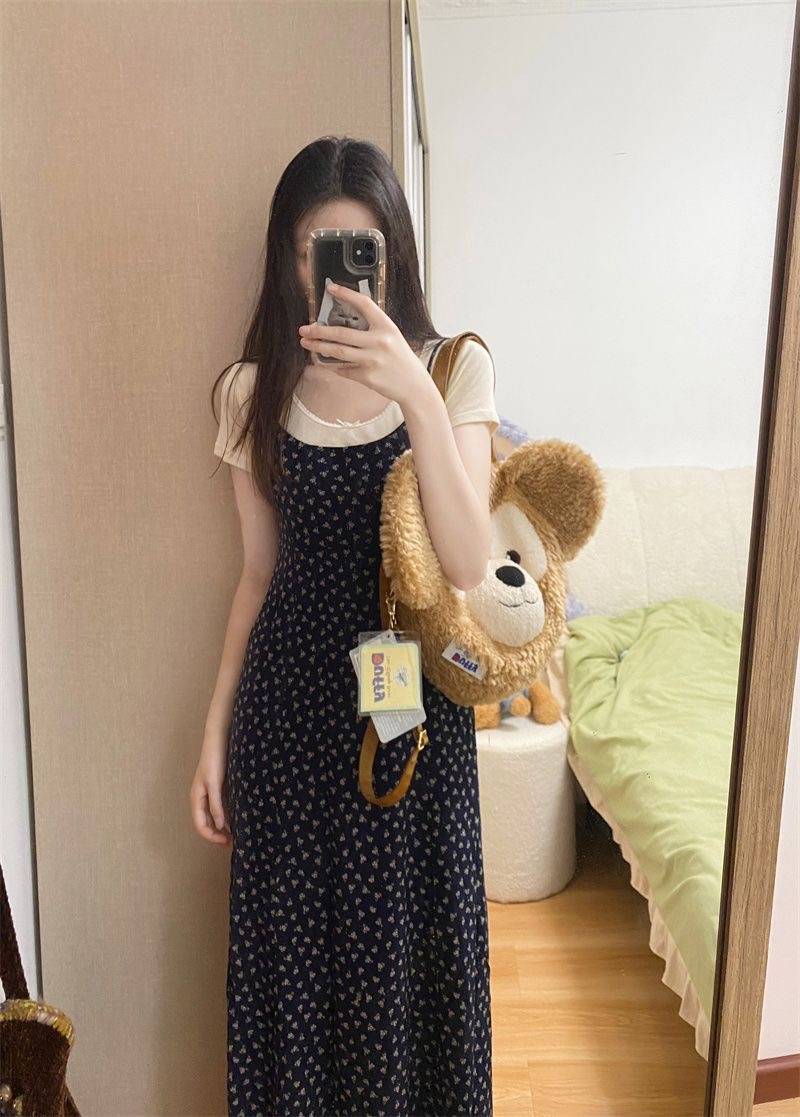 TOYOUTH初语撞色条纹polo裙女2024年夏季新款复古减龄宽松连衣裙