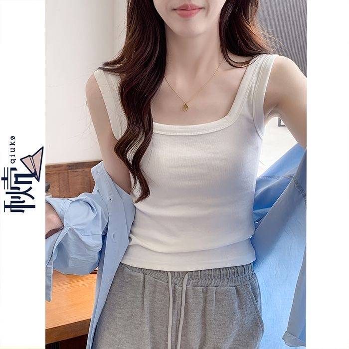秋壳纯棉简约吊带背心百搭上衣女方领外穿西装内搭无袖遮副乳打底