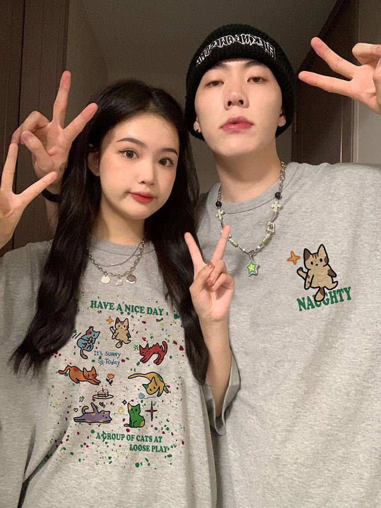 不一样的情侣装T恤2023新款夏季潮牌高级感套装短袖一男一女衣服