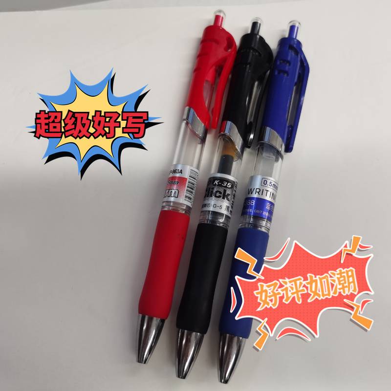 按动中性笔水笔学生用考试三色顺滑