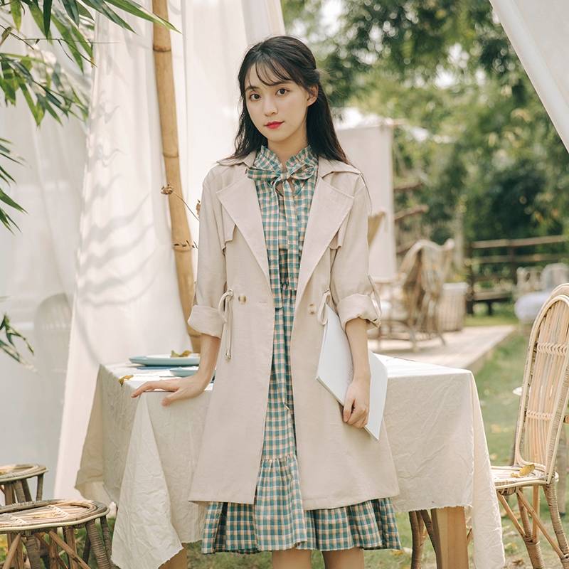 小个子风衣小碎花中长裙抖音超火繁星点点舒服宽松简单大方漂亮美丽