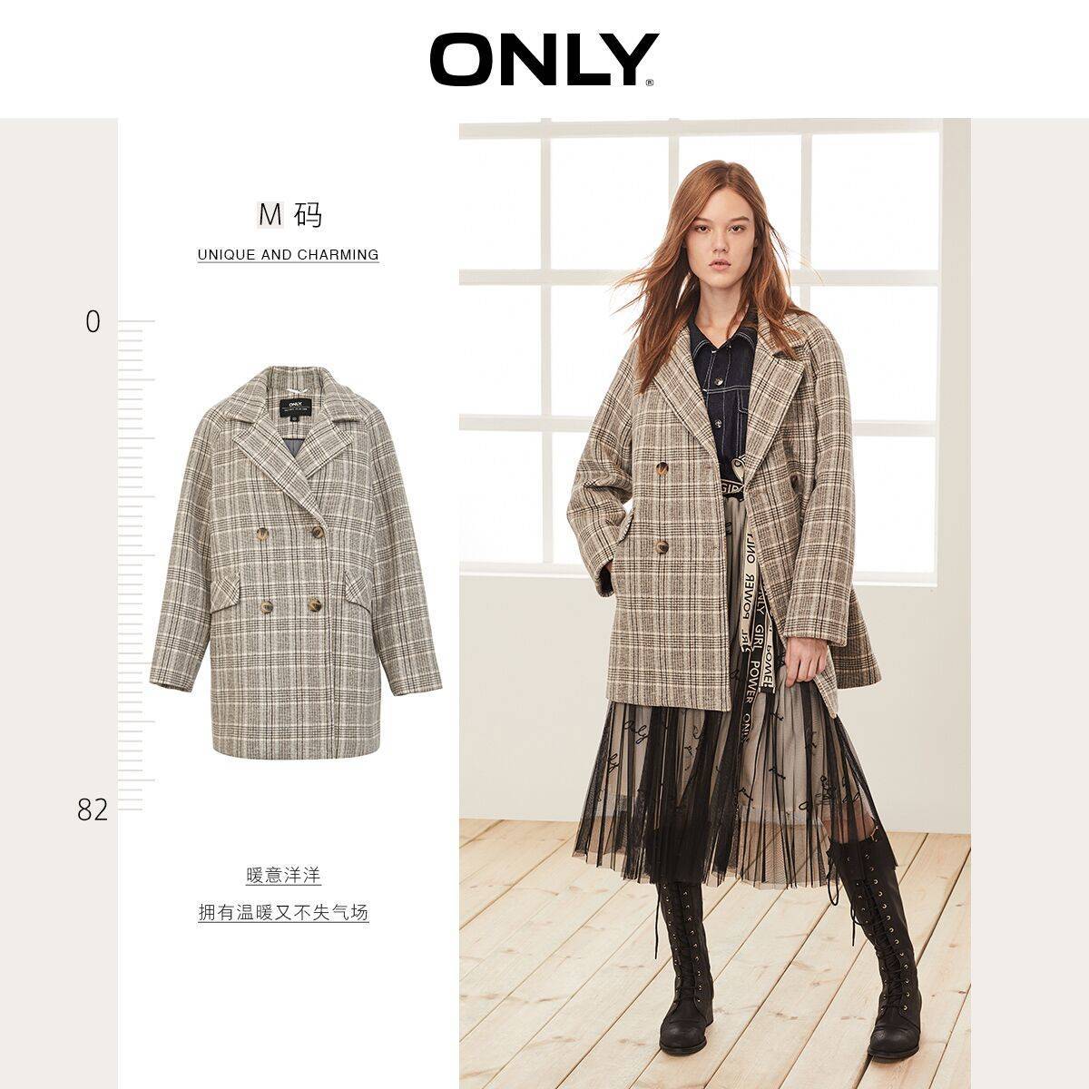 ONLY特价秋季新款复古赫本风格子大衣毛呢外套女1934S524
