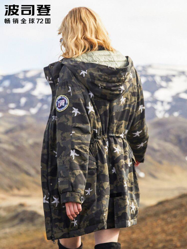 波司登冬季羽绒服女中长款厚款带帽迷彩风衣外套潮B80131118