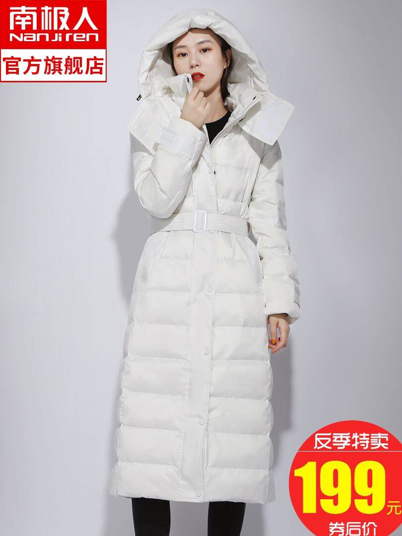 南极人2020年新款羽绒服女中长款加厚收腰修身冬季白鸭绒外套过膝