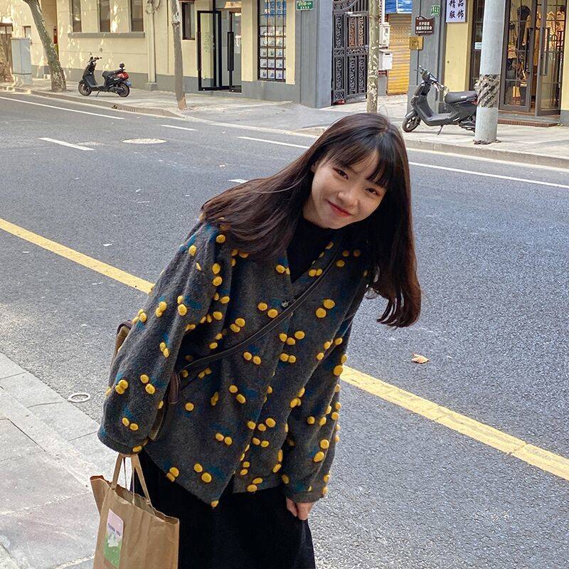奶兔星球樱桃小外套日系复古慵懒少女感毛呢外套女秋冬