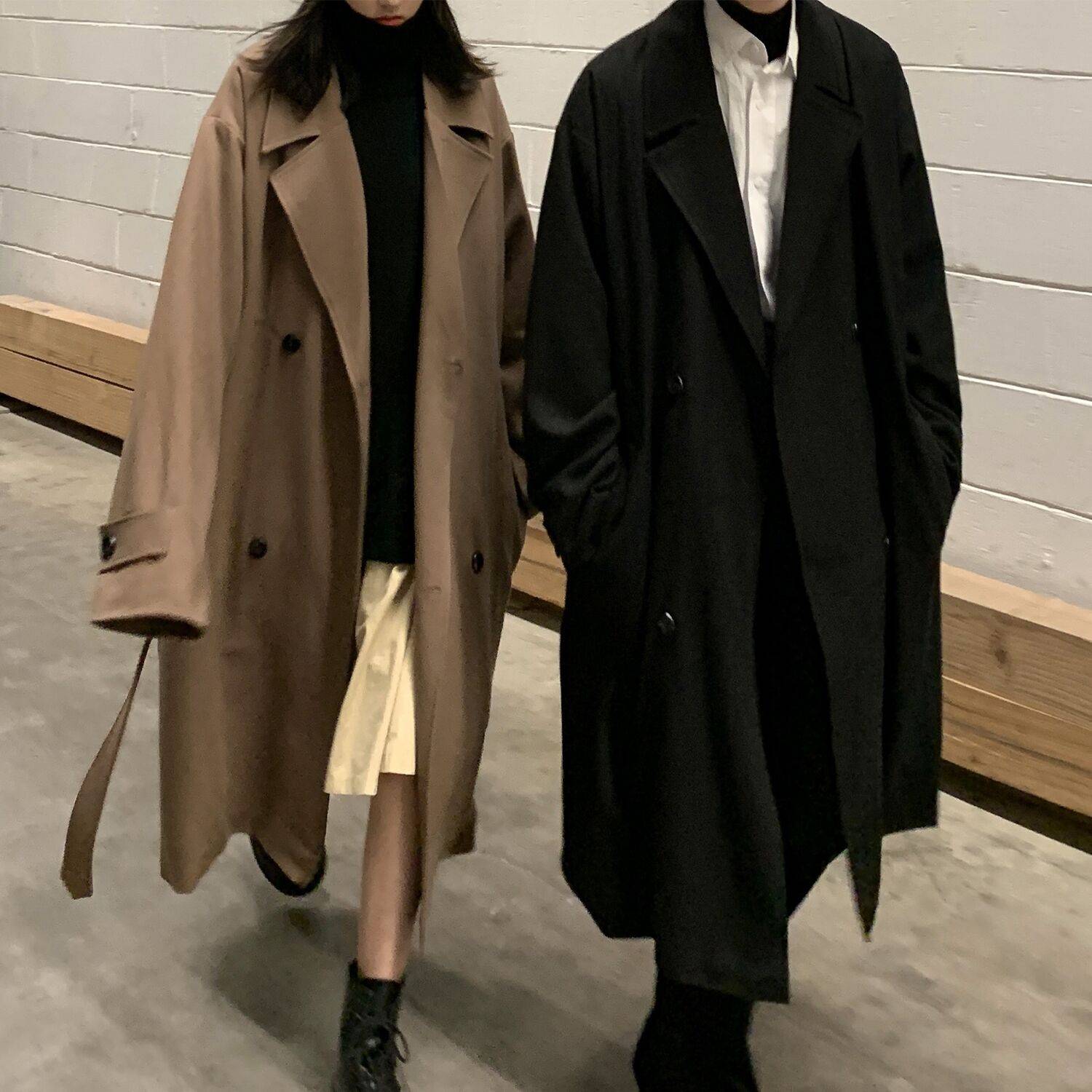 呢子大衣外套女宽松韩系chic 中长款加厚百搭冬季情侣风衣潮满100减20
