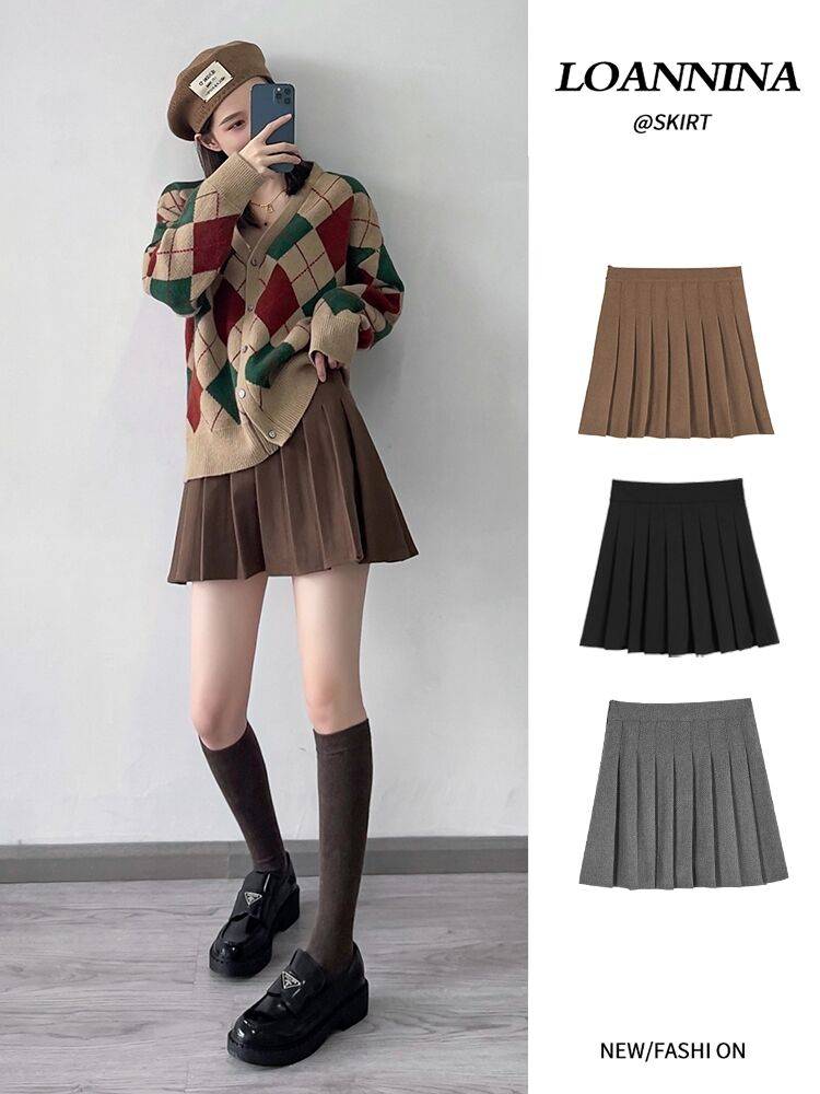 百褶裙女半身裙短裙新款秋冬高腰显瘦A字裙满100减20
