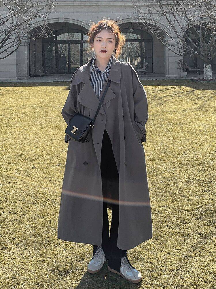 小橙深灰色中长款风衣外套女秋季新款韩版宽松显瘦外套满100减20