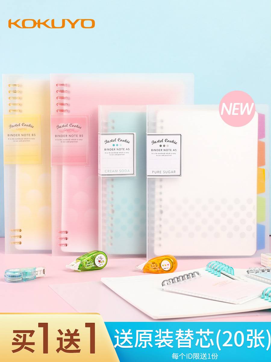 新色一米新纯日本国誉淡彩曲奇柔光活页本格子外壳可拆卸笔记本