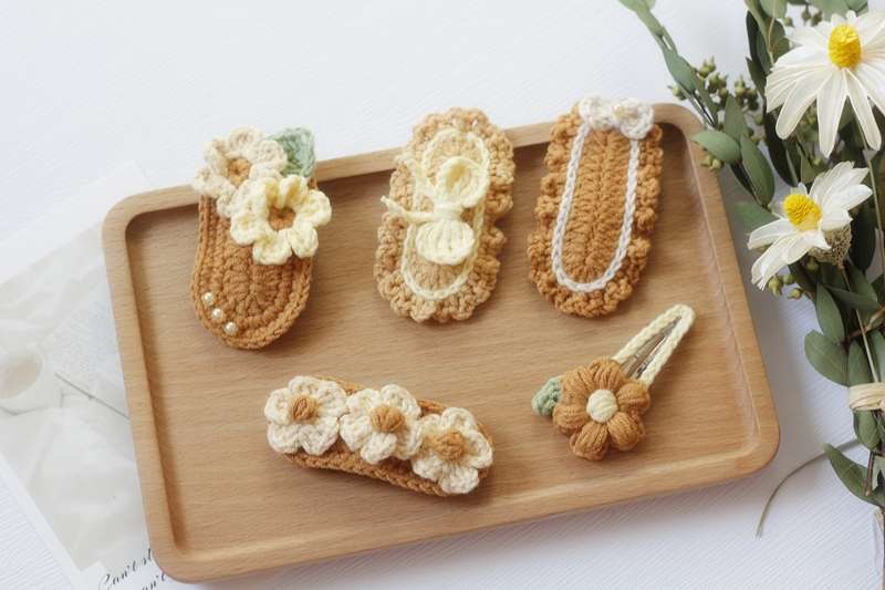 花朵毛线钩针发夹 手工编织diy材料包 送工具送图解