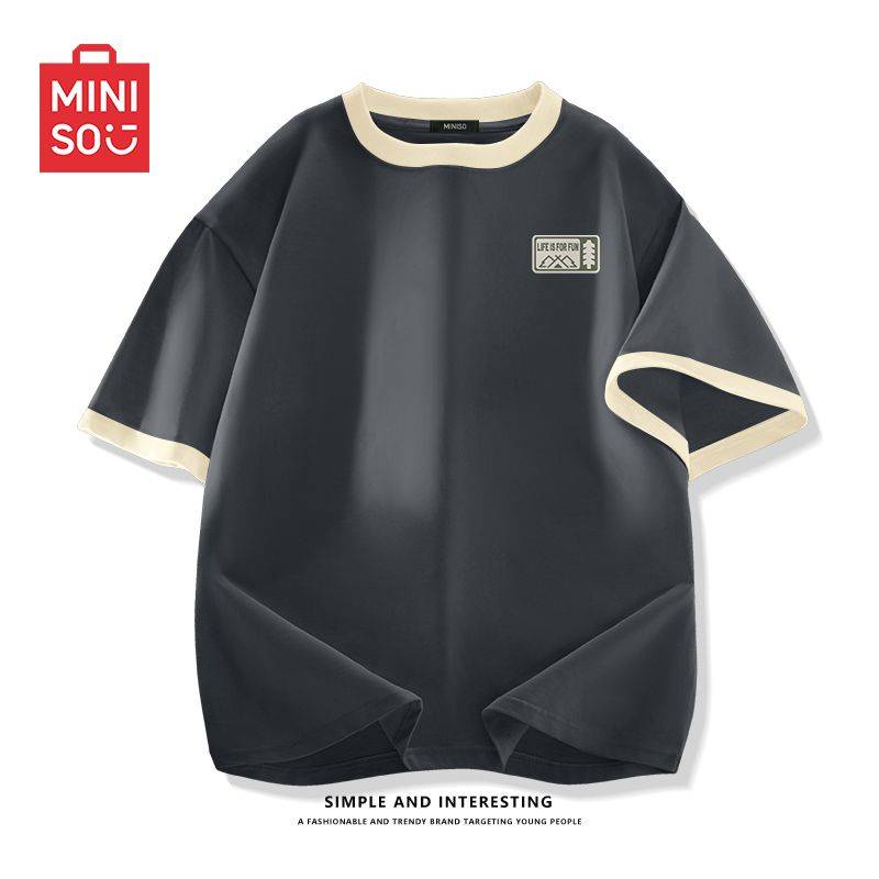 SC名创优品撞色短袖t恤男夏季山系复古上衣休闲百搭纯棉半袖