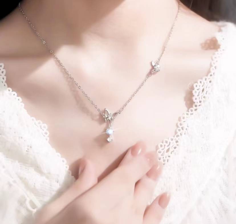 甜美氛围感灵动少亮晶晶蝴蝶结项链女款精美礼盒送女生生日