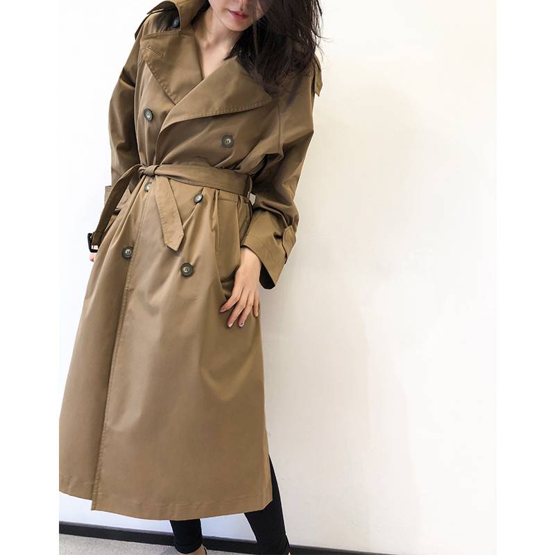 2018春秋新款港风过膝风衣中长款收腰显瘦韩版女装卡其色大衣外套