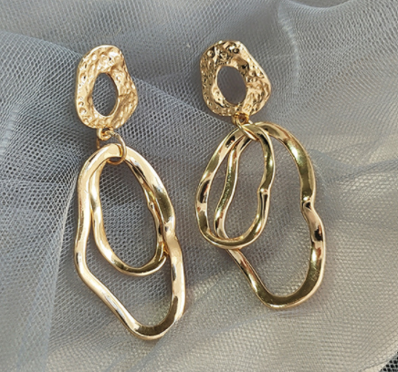 S925银针几何不规则耳钉简约金属质感冷淡风耳坠网红多层耳饰