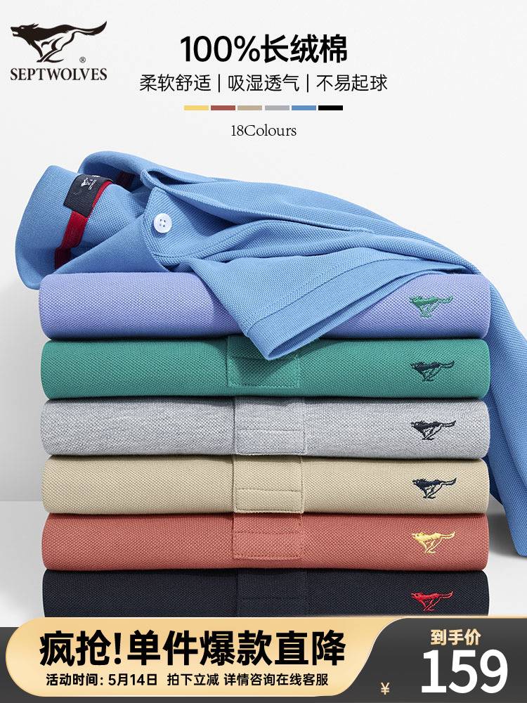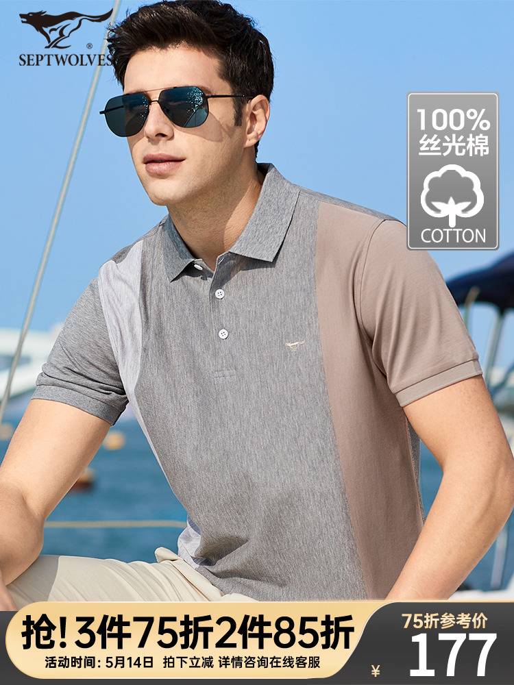 七匹狼男装冰丝光棉短袖T恤2023夏季新款翻领Polo衫男士中年半袖