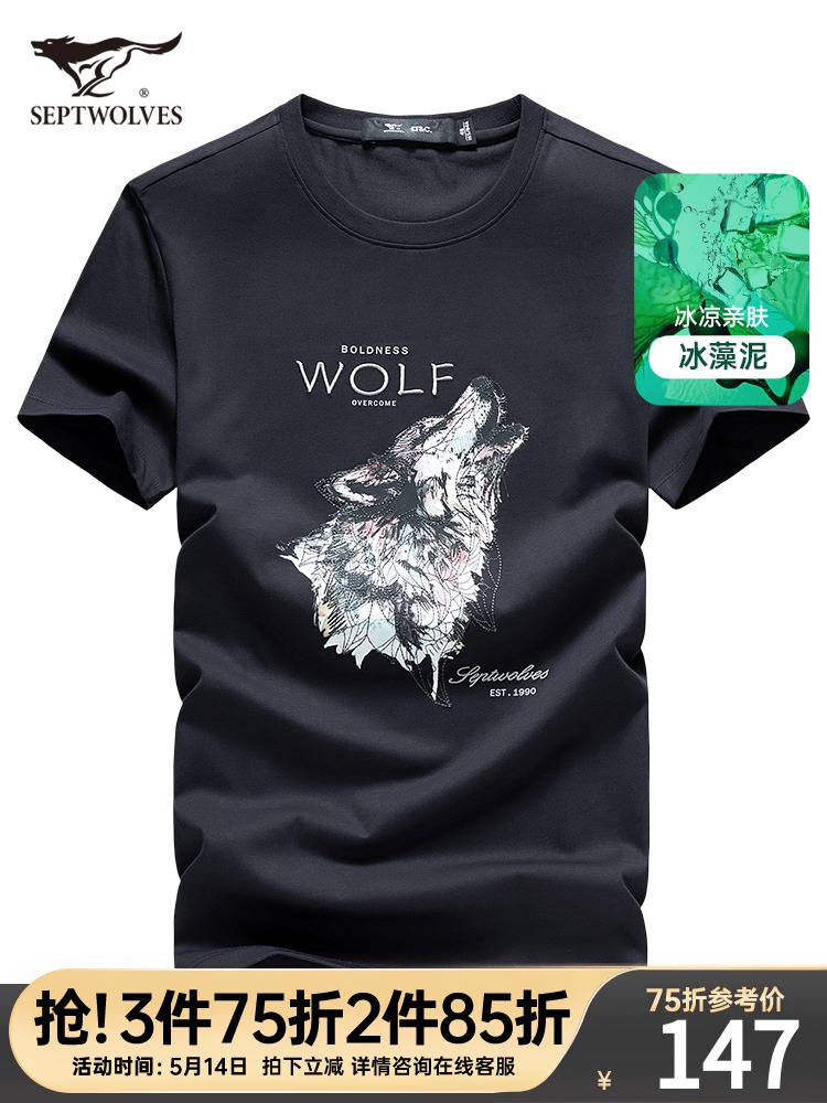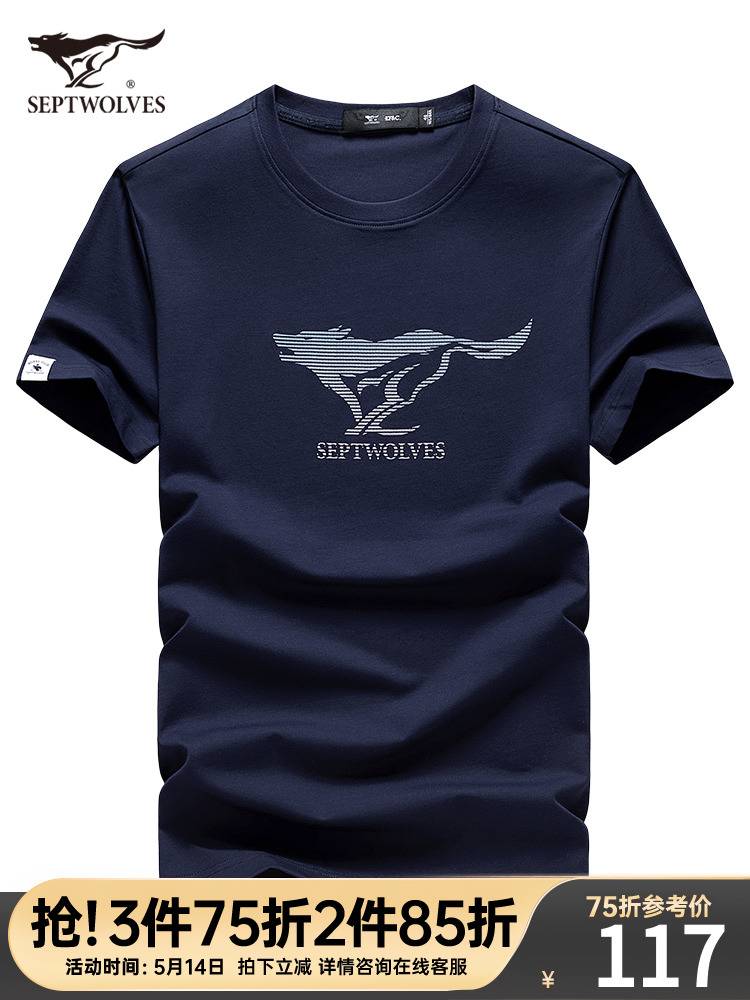 七匹狼短袖T恤男士2023夏季新款圆领印花半袖体恤休闲品牌男装潮