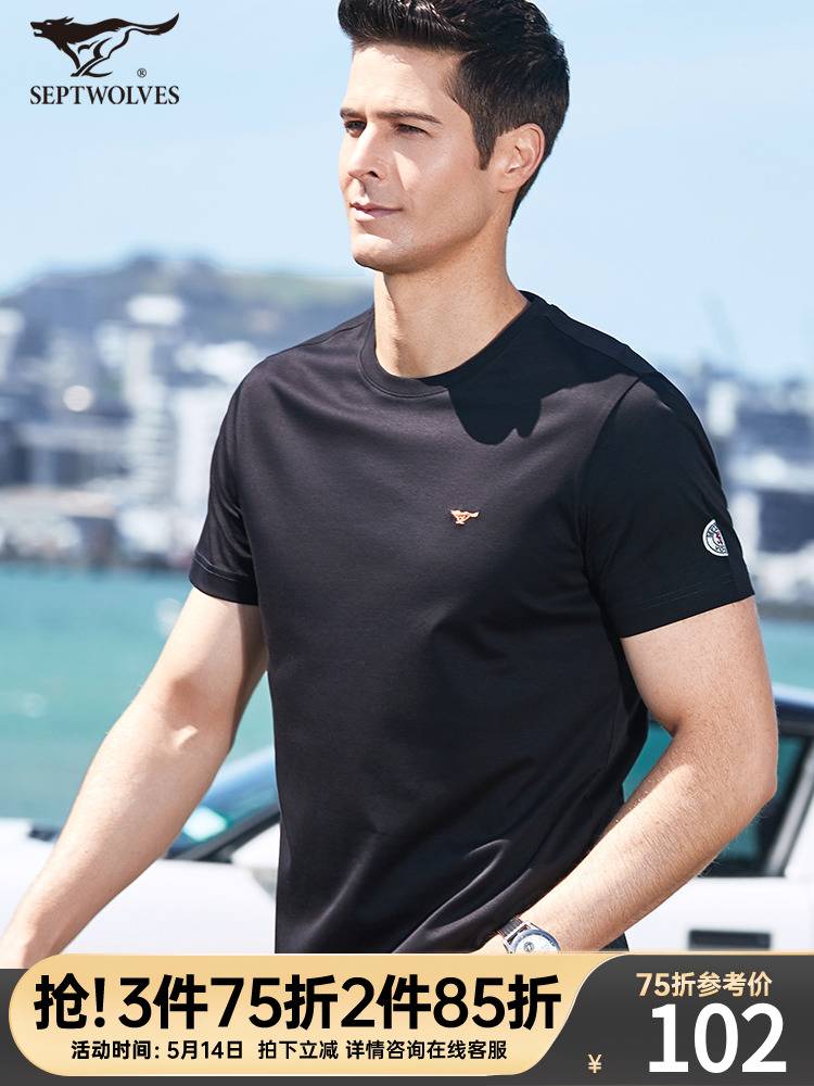 七匹狼短袖t恤男2023夏季新款男士冰丝光棉圆领衣服潮流宽松男装