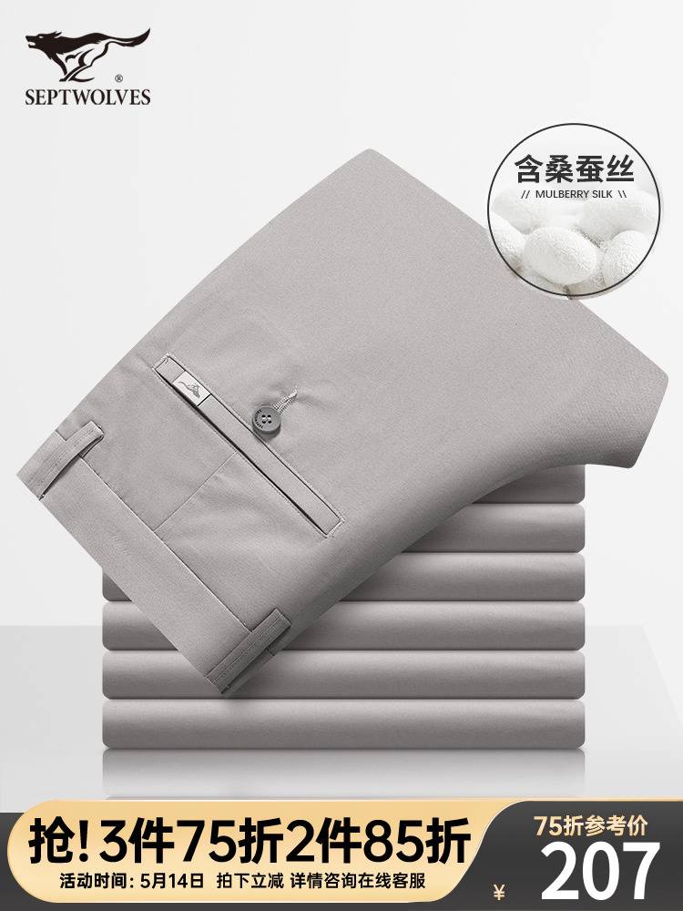 七匹狼休闲裤男士2023夏季新款桑蚕丝冰丝直筒商务长裤爸爸男装