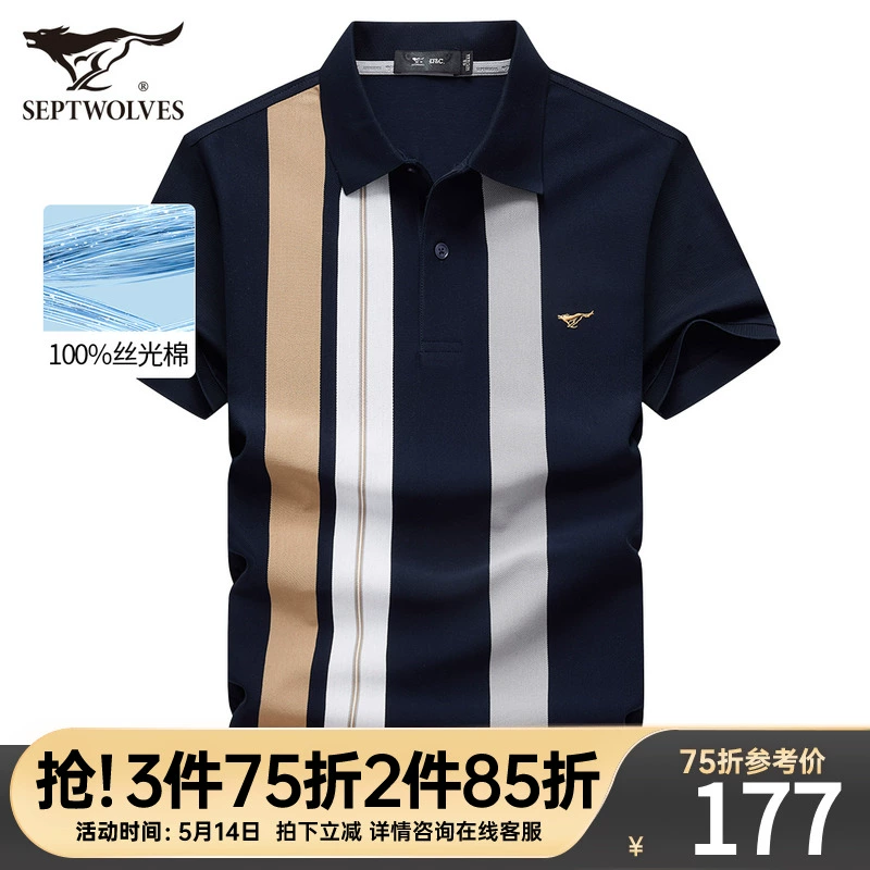 七匹狼短袖T恤男士2023夏季新款休闲纯棉条纹翻领Polo衫爸爸男装