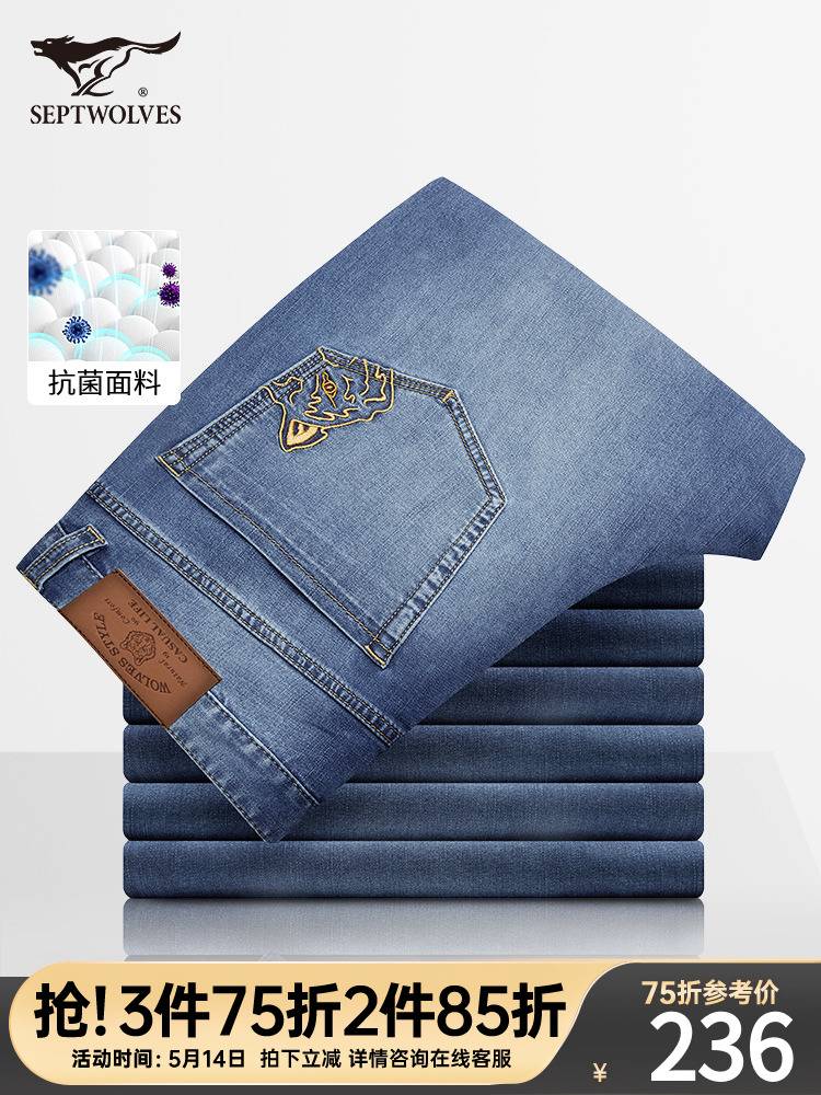 七匹狼男士水洗牛仔裤2023夏季新款爸爸直筒长裤休闲中年男装夏装