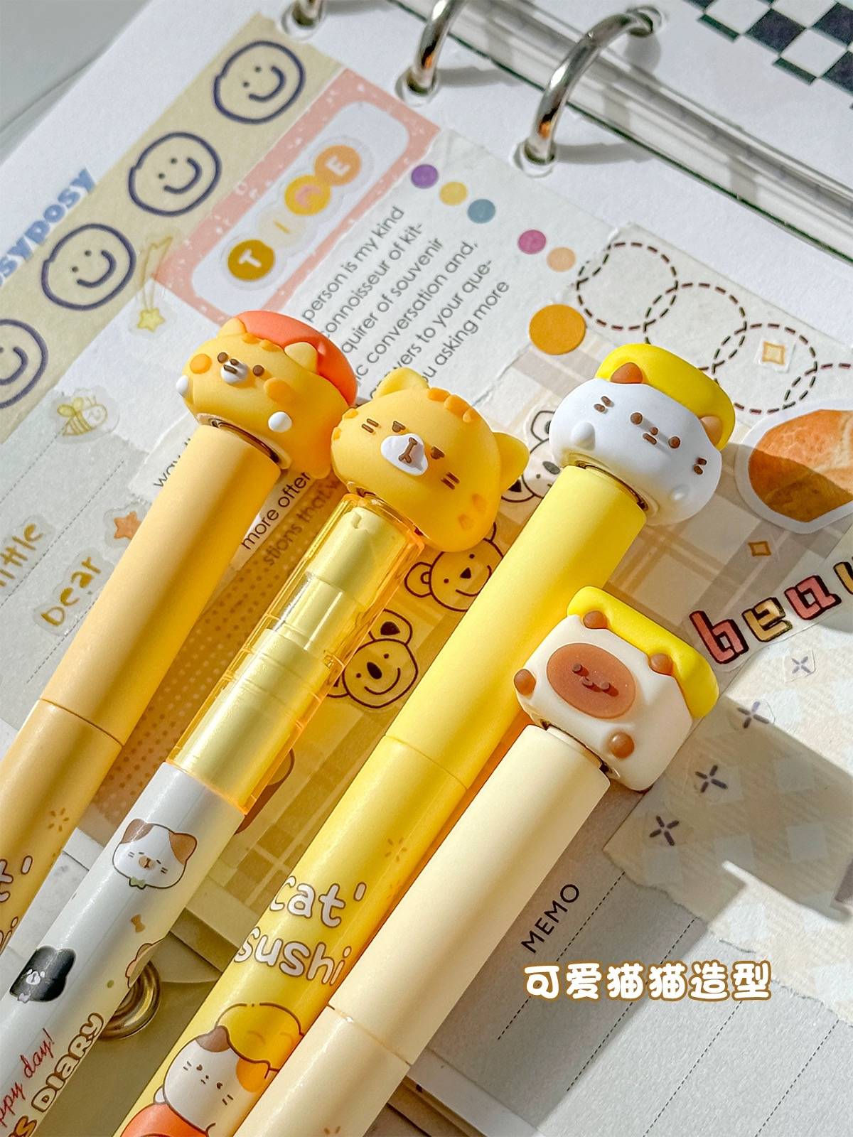 三年二班熊猫解压转转笔可爱学生用按压中性笔黑色高颜值子弹头