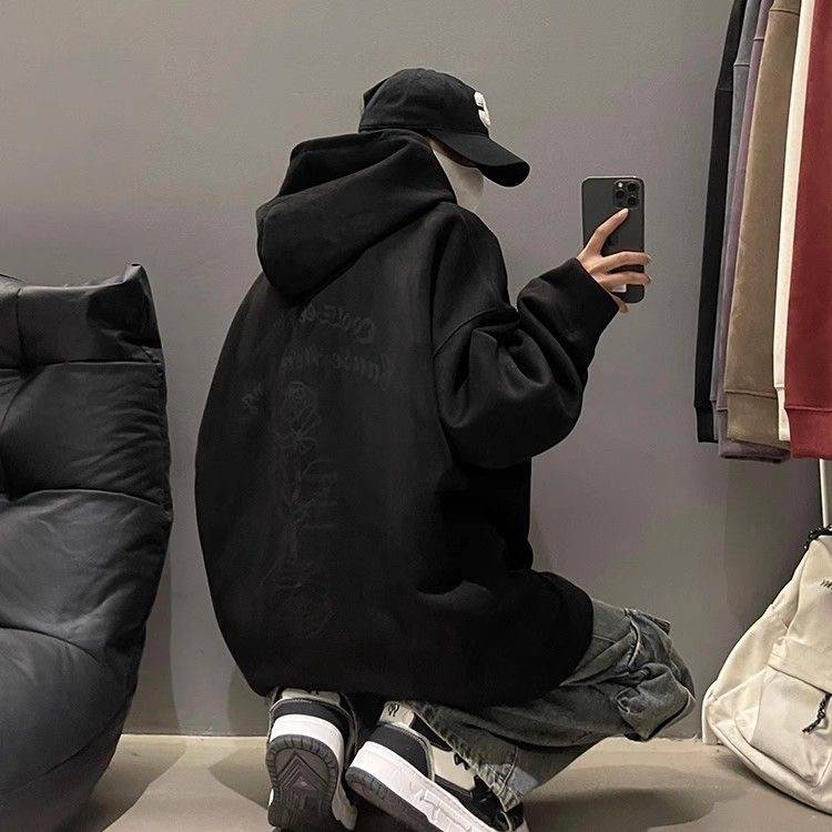 重磅连帽麂皮男女绒连帽卫衣秋冬季美式复古潮牌衣服宽松情侣外套
