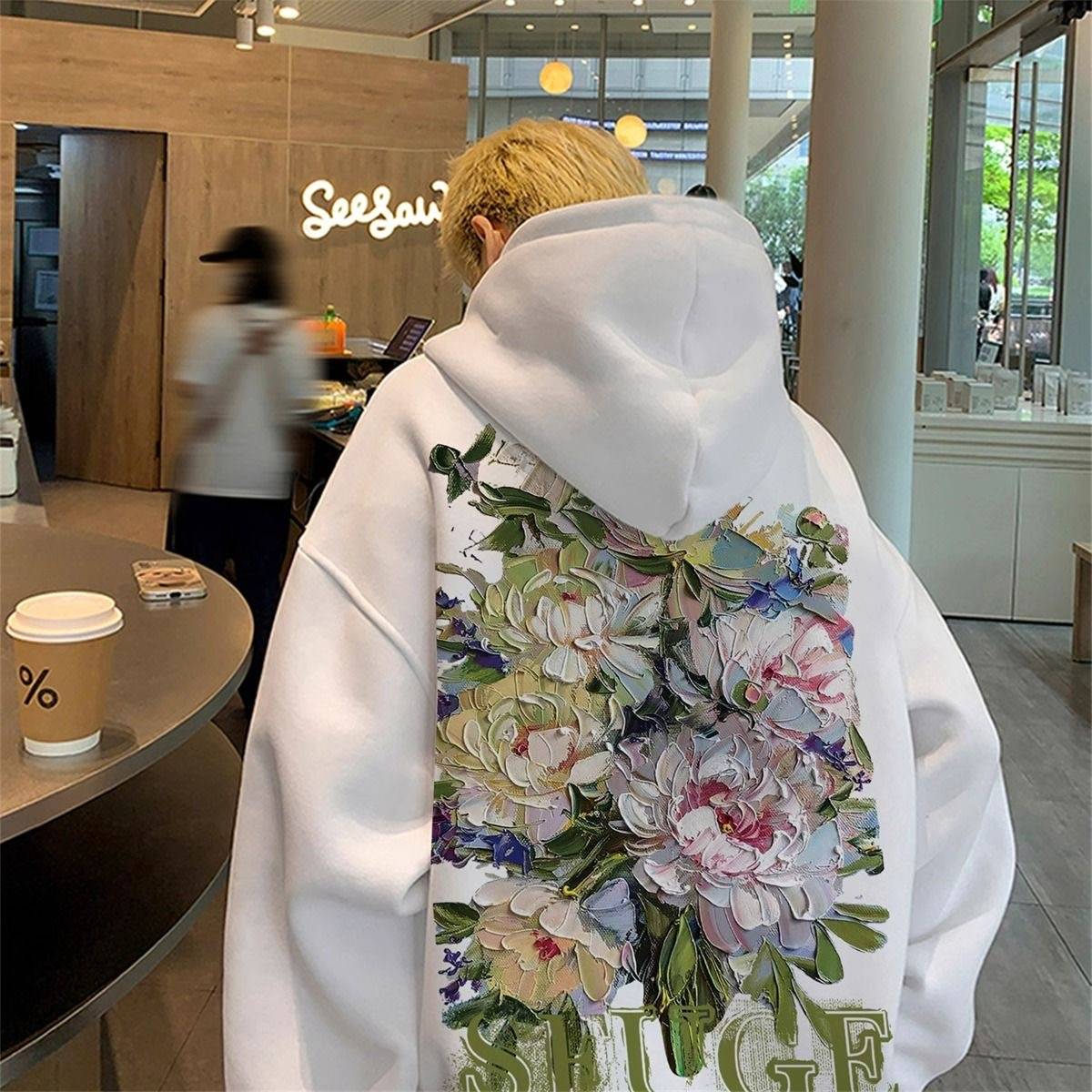 美式高街vintage油画卫衣女男秋宽松欧美风复古潮牌情侣帽衫外套