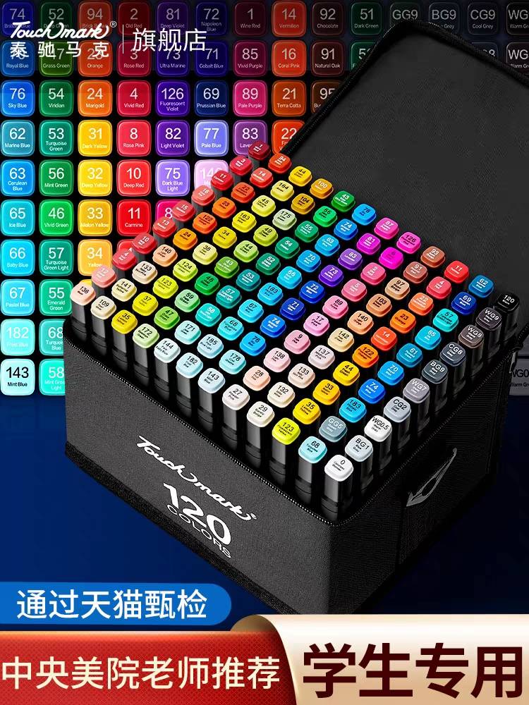 Touchmark马克笔48色油性速干双头水彩笔学生儿童美术绘画专用不透色24/36/60/80色小学生动漫彩笔画笔套装