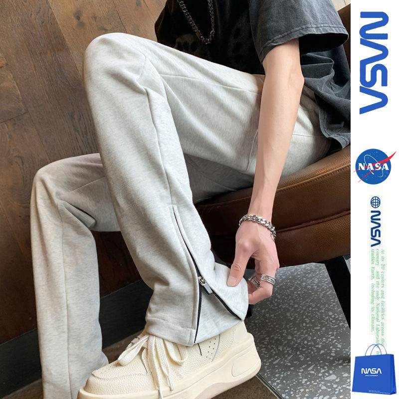 美式裤脚拉链开叉修身微喇vibe裤子秋冬季加绒加厚高街潮流直筒裤