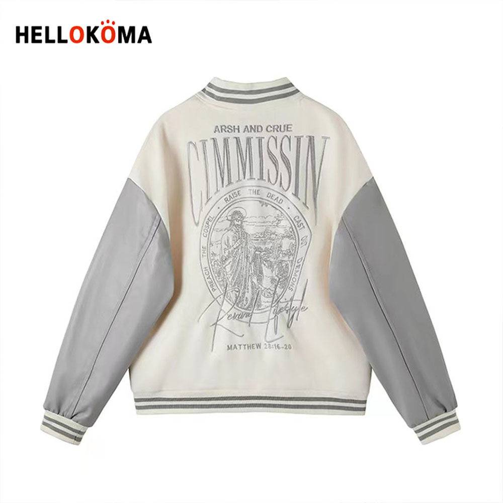 oversize风潮牌刺绣拼皮棒球服外套男女情侣同款2023年春秋季新品