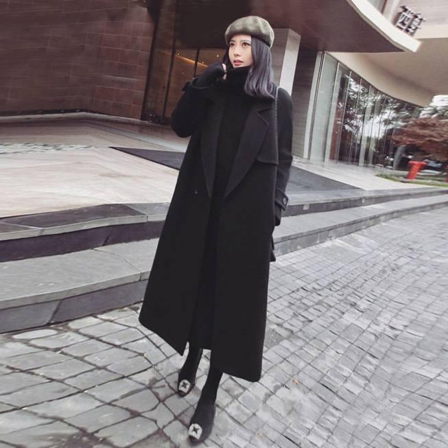 反季清仓过膝毛呢大衣韩版女秋冬中长款系带显瘦赫本双面呢子外套