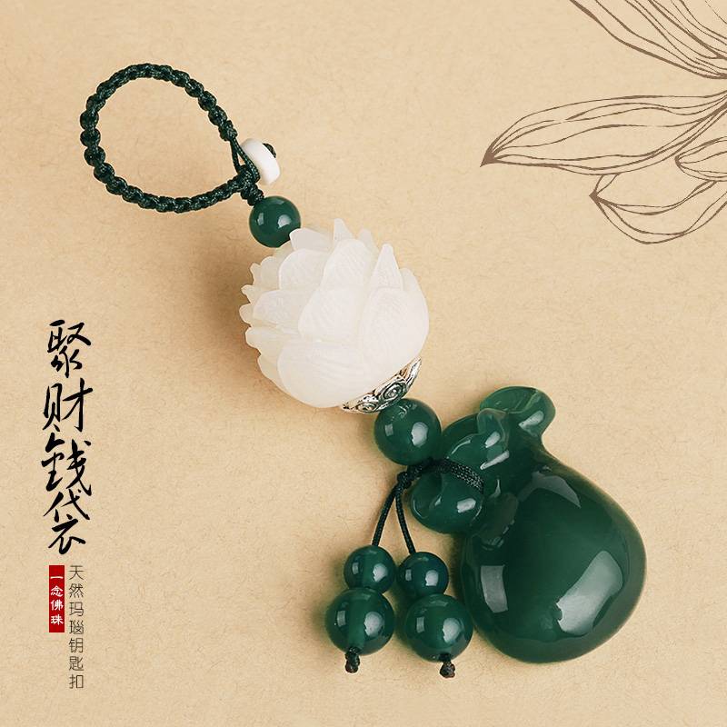 菩提莲花汽车钥匙挂件玉髓钱袋创意礼品钥匙扣男女时尚高档包挂饰
