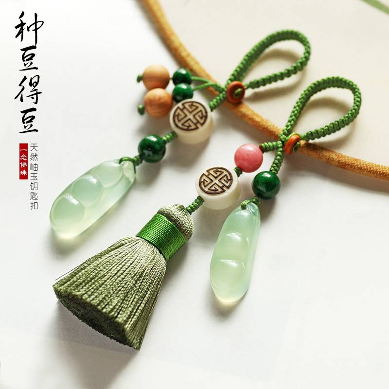 种豆得豆玉石汽车钥匙挂件挂饰 古朴 文艺 流苏钥匙扣 男女款