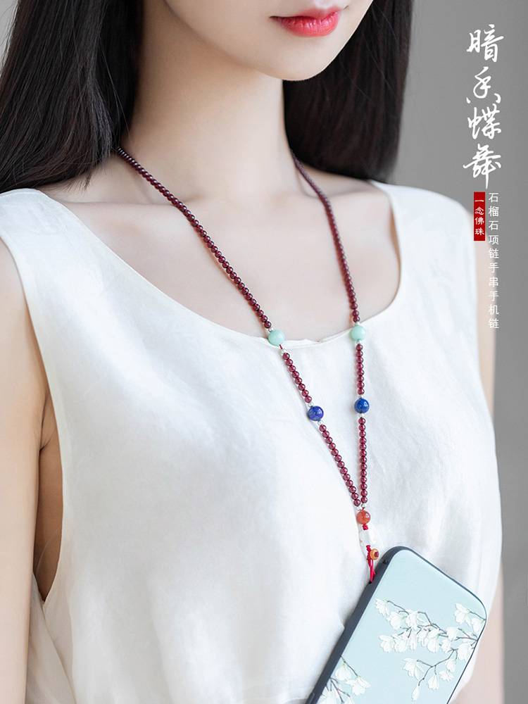 暗香蝶舞 一念原创 天然水晶紫牙乌石榴石项链手串手机挂绳手机链