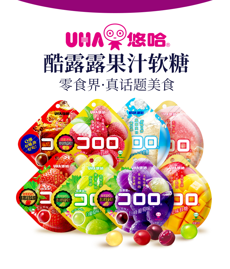 UHA悠哈果汁软糖 52g橡皮糖酷露露果汁软糖糖果零食6种口味可选