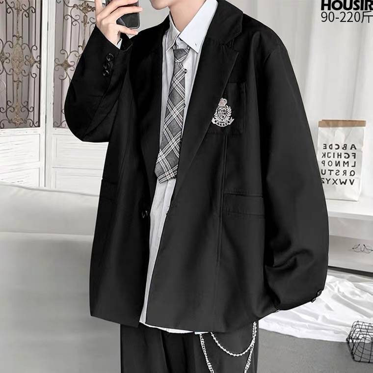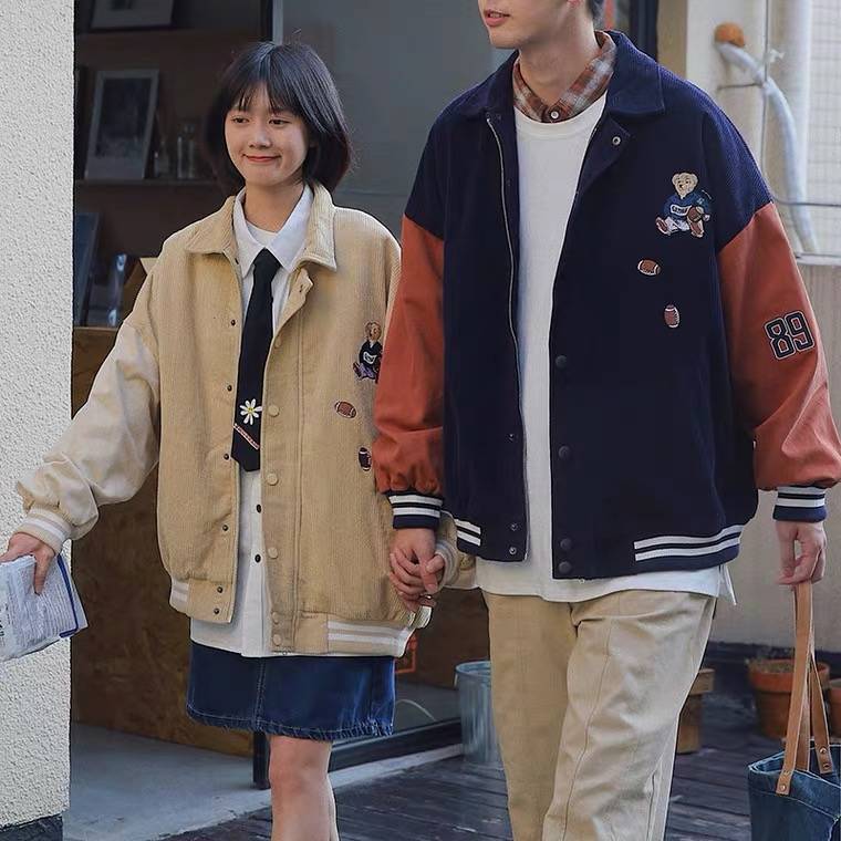 日系简约字母印花长袖工装衬衣男潮牌街头宽松bf风薄外套