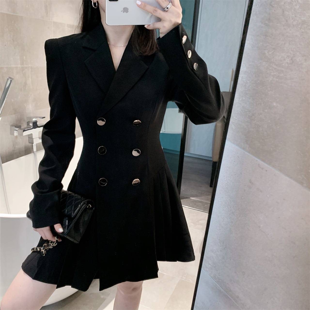 韩版2023春装新款气质显瘦黑色收腰西装修身连衣裙女设计感T5921