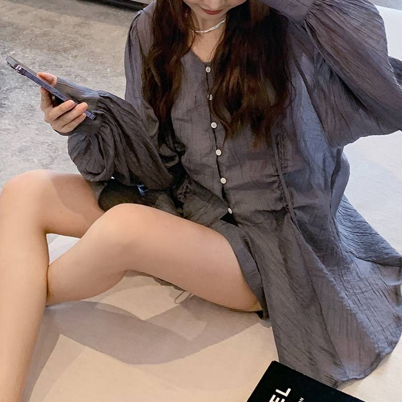 长袖缎面衬衫女设计感时尚2023春秋装新款垂感复古港味宽松夏季衣