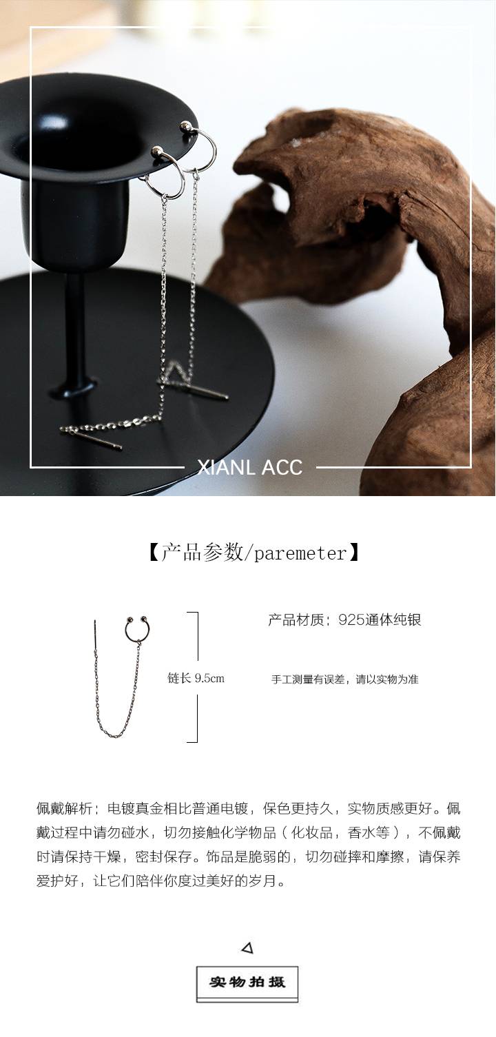 耳钉女纯银防过敏耳夹2020新款潮耳线养耳洞耳链耳骨耳环一体耳饰