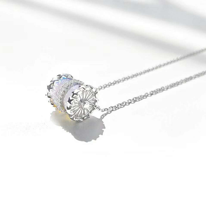 原创设计s925纯银小红人极光石小蛮腰情侣项链男女七夕情人节礼物