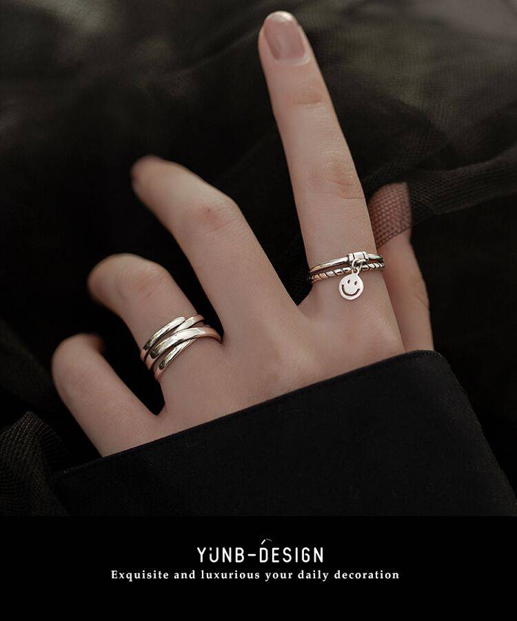 笑脸纯银戒指女时尚个性简约ins潮设计百搭时尚冷淡风开口可调节