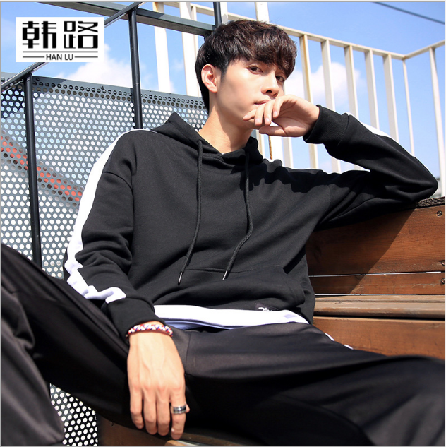 韩路男装 卫衣2018秋季新款连帽拼接oversize情侣休闲长袖上衣男