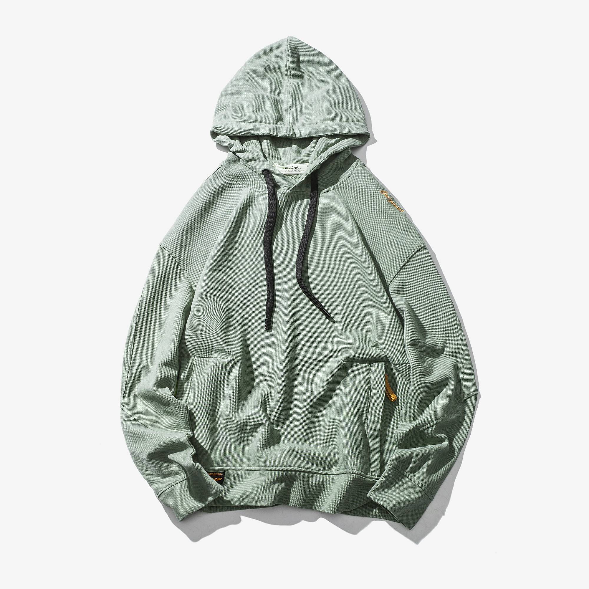 2018秋季新款亚麻卫衣男士长袖衬衫纯色简约连帽休闲开衫